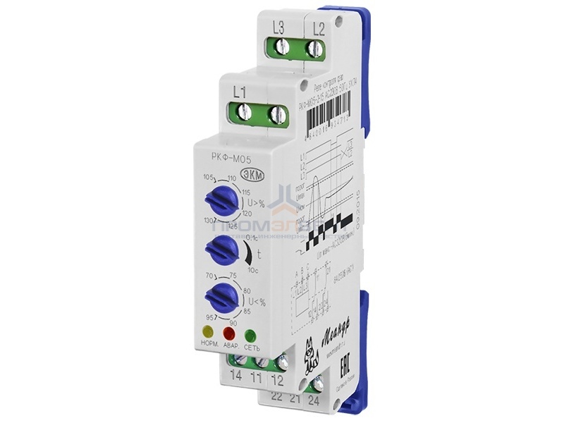 Заявки принимаются с реквизитами через почтуРеле контроля фаз РКФ-М05-1-15 используется для контроля трёхфазного напряжения в трёхпроводных сетях без нейтрали. Реле контролирует обрыв, чередование и "слипание" фаз, линейное превышение (снижение) напряжения выше (ниже) установленного значения.