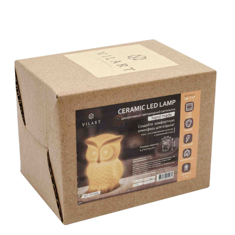 18-117 Светильник декоративный, настольный, "Филин", керамический, светодиодный, 3xLR44, размер: 6.5*6.5*9.5 см. – поставка оптом и в розницу от компании «ПромЭлВент». Цены от производителя: доставка по Москве и всей России. Скидки на объем!