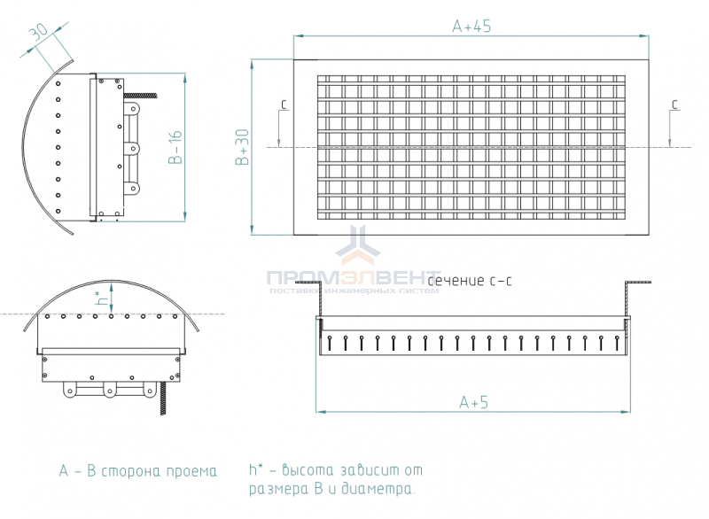 Минимальные рекомендуемые размеры 100х100 мм Максимальные рекомендуемые размеры 1900х1000 мм Высота проема под решетку не должна превышать 75% диаметра воздуховода. Возможно изготовление бо́льших размеров с использованием дополнительных усилений. За подробностями обращайтесь к менеджерам.