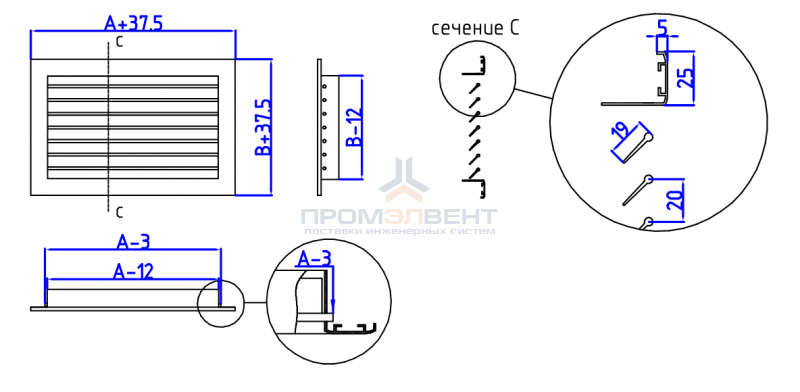Заявки принимаются с реквизитами через почтуРегулируемая вентиляционная решетка Р1 состоит из рамы, сделанной из алюминиевого уголка 30 х 30 мм. со специальными ребрами жесткости и каплевидными жалюзи, регулируемыми вручную.