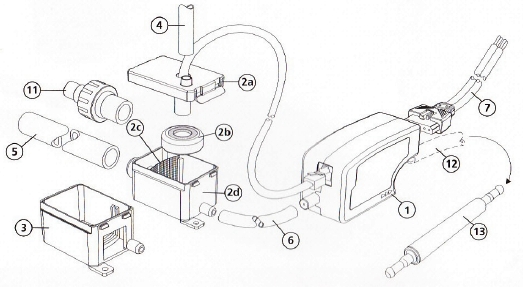 2. Резервуар (крышка, сенсорный кабель, фильтр-сетка, поплавок с магнитом, корпус резервуара);